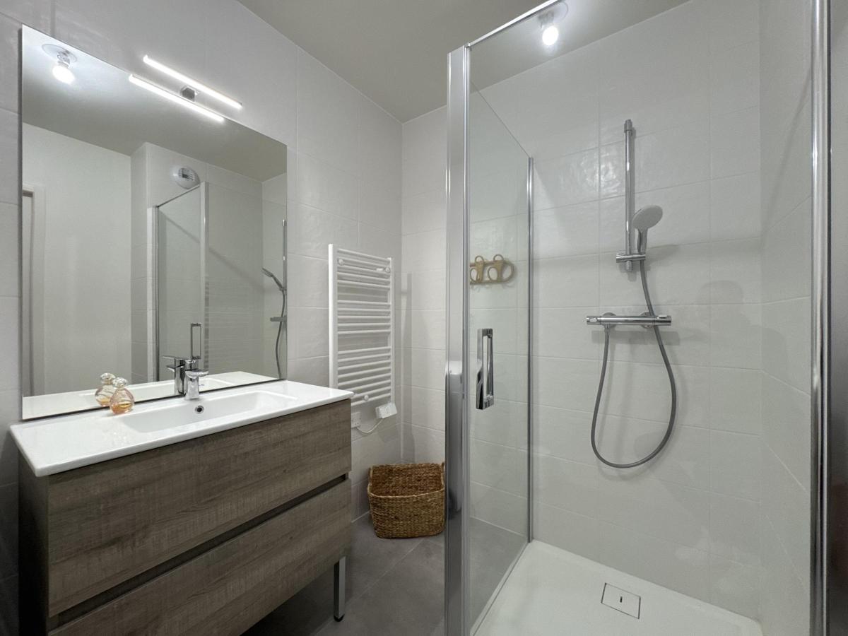 L’espace nuit se compose de trois chambres avec rangements intégrés, d’une salle d’eau contemporaine avec douche, sèche-serviettes et simple vasque, ainsi que d’un WC indépendant.
