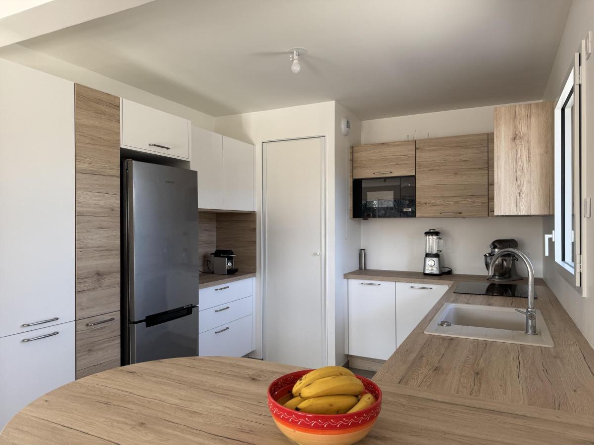 L’entrée avec placard dessert une vaste pièce de vie de plus de 41 m², comprenant un séjour lumineux et une cuisine aménagée et équipée, pensée pour un usage quotidien comme pour la réception.
